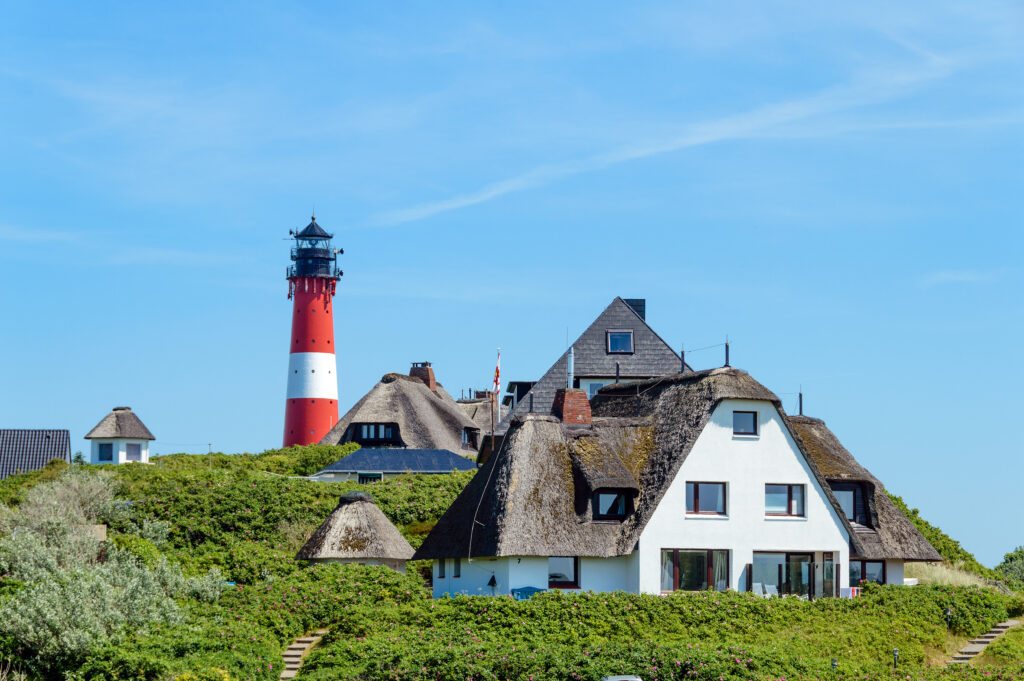 Exklusives Ambiente: Charmante Reetdachhäuser, stilvolle Boutiquen und ein Hauch von Luxus machen Sylt einzigartig.